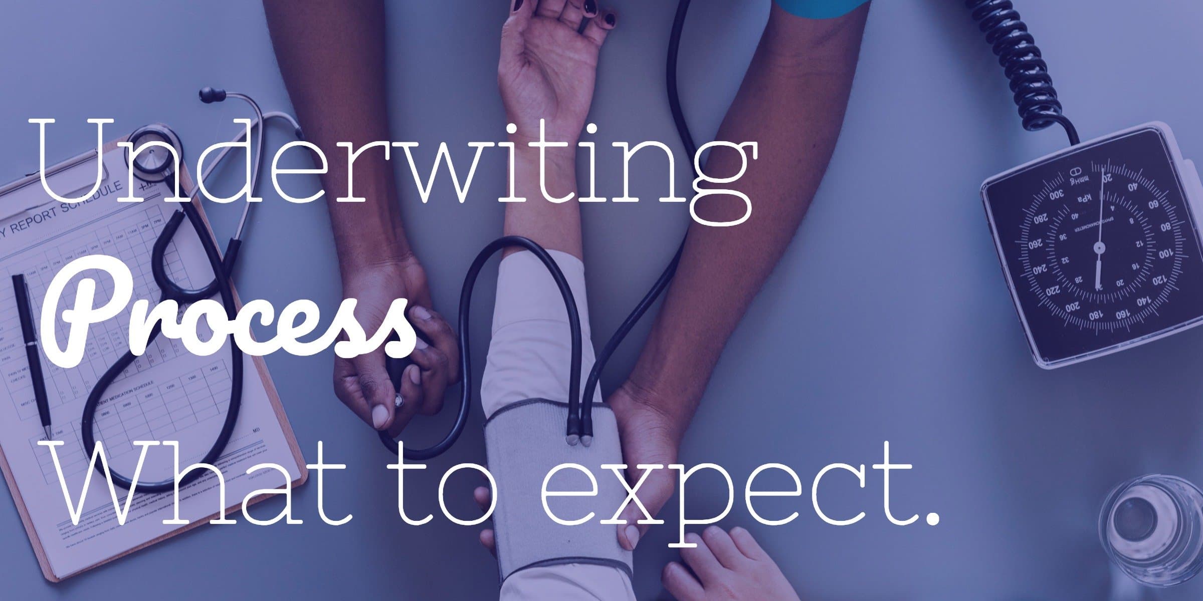 With a fully underwritten life insurance policy, a medical exam is also usually required. Here, you will meet with a paramedical professional (also often referred to as a "paramed'). During this paramed exam (which typically only takes about 30 minutes to complete), the paramed with take a pulse and blood pressure reading from you.